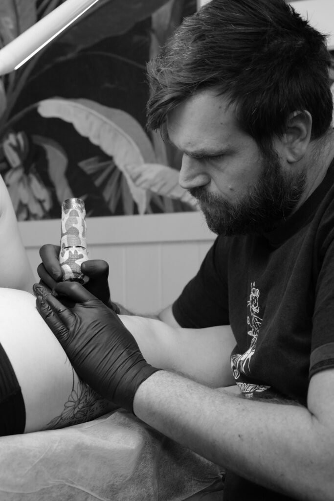 With a keen eye for detail and a steady hand, Jeff creates stunning designs that are both intricate and precise. His dot work tattoos feature intricate designs shaded with the popular pointilist style, while his fine line and etch work tattoos showcase his mastery of creating delicate, precise lines that perfectly capture the essence of the design. Jeff works closely with clients to understand their vision and create a custom design that perfectly fits their style.